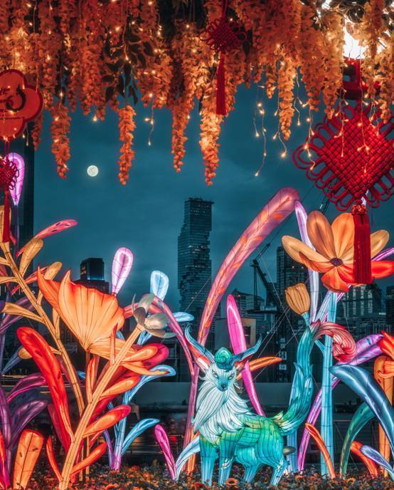 2025年,豫园灯会在海外市场多点开花,文化表达更趋丰富。在泰国曼谷,为期50天的“山海有灵・豫园灯会”于暹罗天地ICONSIAM举办,创造性地将《山海经》中的四方岛屿概念与湄南河地理风貌结合,累计吸引超400万观灯者,全球传播声量近12亿。在新加坡,豫园灯会以“蝶舞中秋”灯组亮相滨海湾花园,灵感源自《庄子・齐物论》的“庄周梦蝶”,融合《山海经》神兽胐胐与上海经典品牌“大白兔”元素,唤起全球华人的情感共鸣。