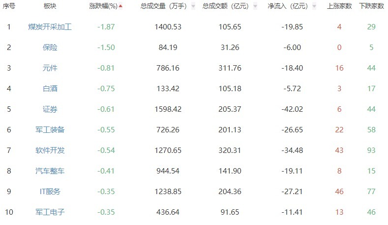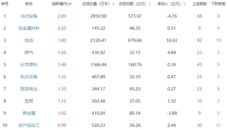 板块方面,光伏设备、非金属材料、电池等板块涨幅居前,煤炭开采加工、保险、元件等板块跌幅居前。